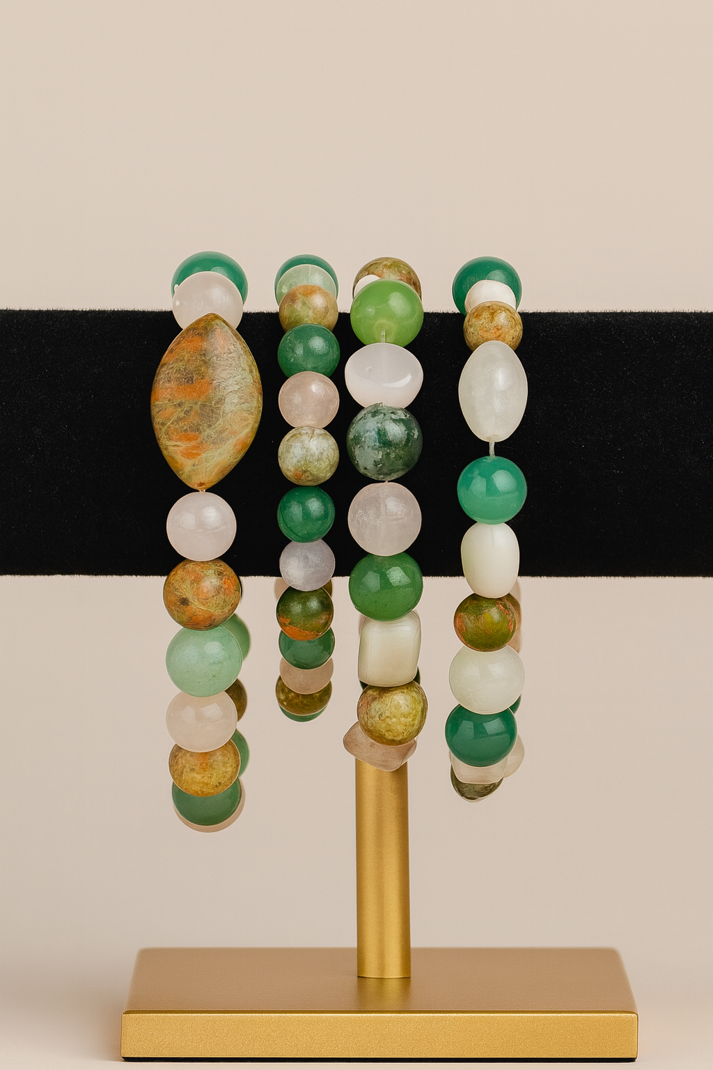 From crystal bracelets that balance your energy to pendants that hold your story close, these handcrafted pieces are made to move with you through life’s cycles — grounding, guiding, and shimmering with quiet magic.